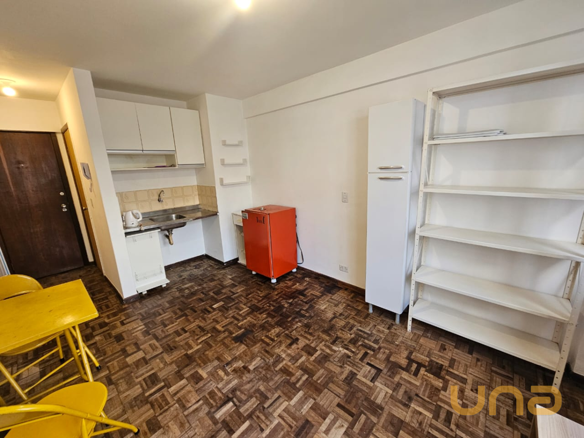 01 quarto conjugada com a cozinha com pia e geladeira, piso taco, 01 banheiro, ensolarado, sem vaga de garagem, chuveiro elétrico, botijão de gás.