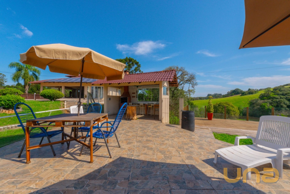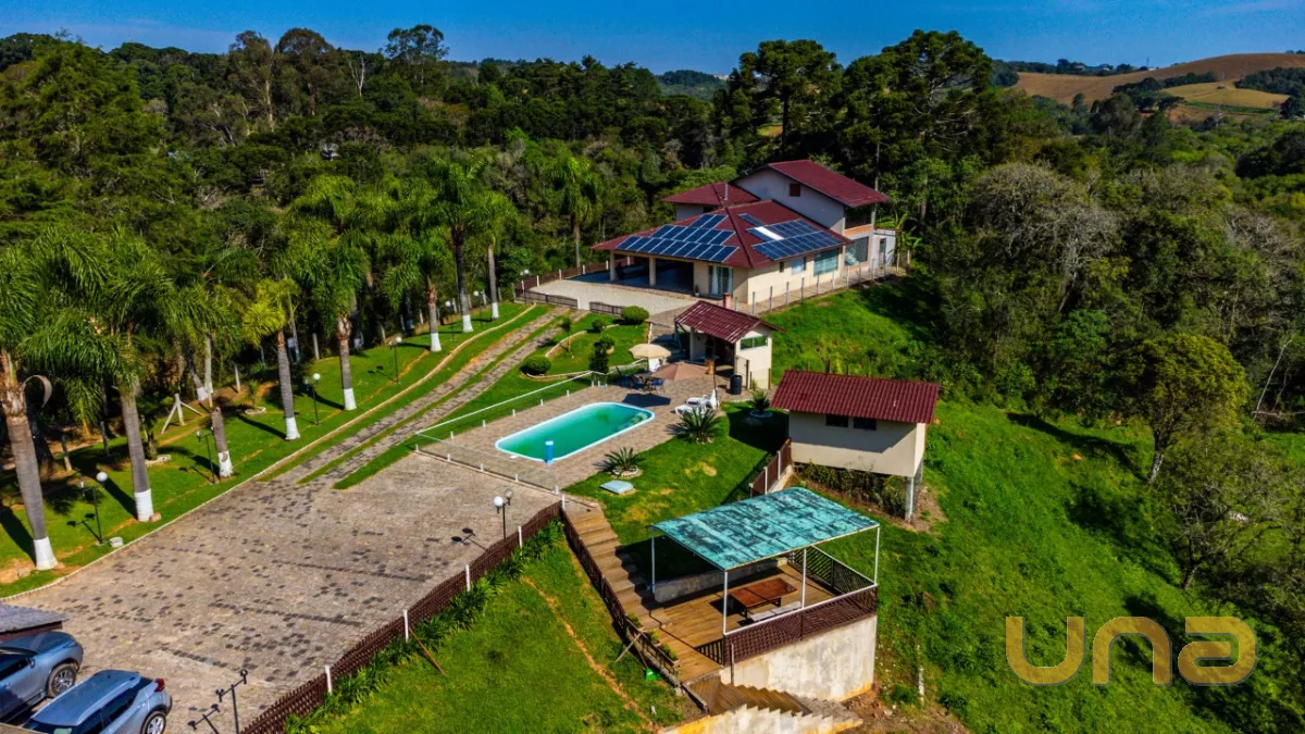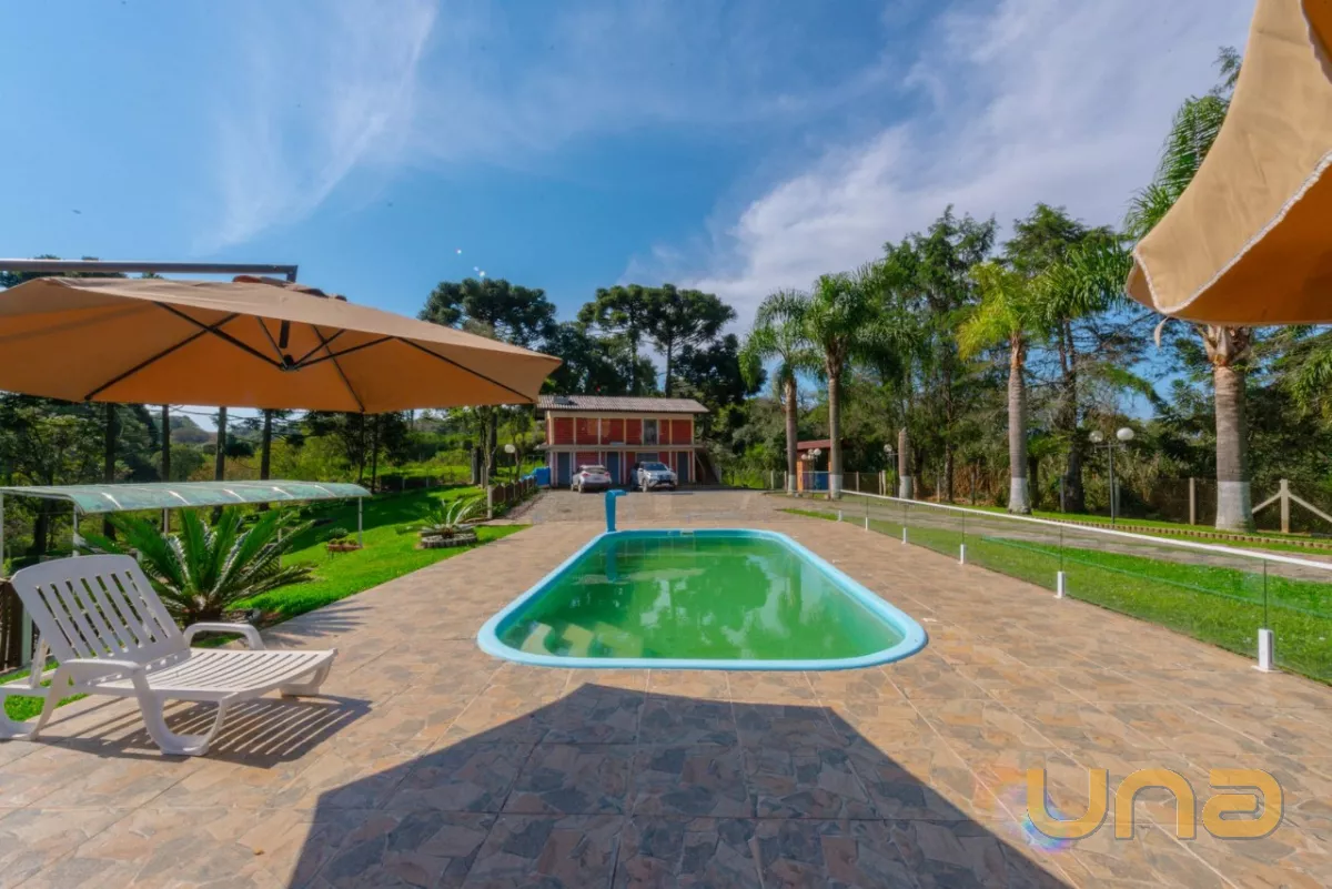 Chácara aconchegante na zona rural de Campo Largo em terreno de 58.950,00 m a 18 minutos do Parque Barigui. Com residência de aproximadamente 280,00 m, com 4 quartos (sendo 1 suíte), sala de estar, jantar e jogos totalmente integradas, cozinha com fogão a lenha, deck com vista para o lago, piscina, quiosque com churrasqueira e ampla área de estacionamento.
