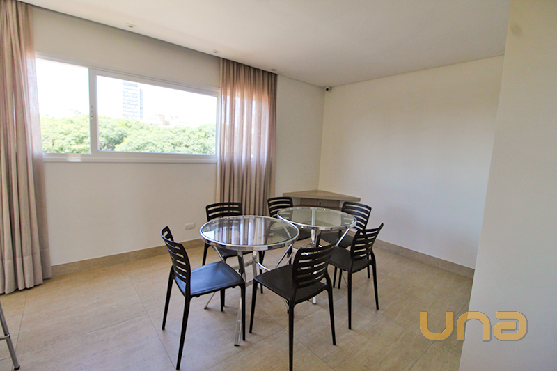 TOTALMENTE MOBILIADO (armários planejados, geladeira, micro-ondas, cooktop elétrico, mesa de refeições, cama de casal, Smart TV 32 polegadas, cortina, ar condicionado Split);
