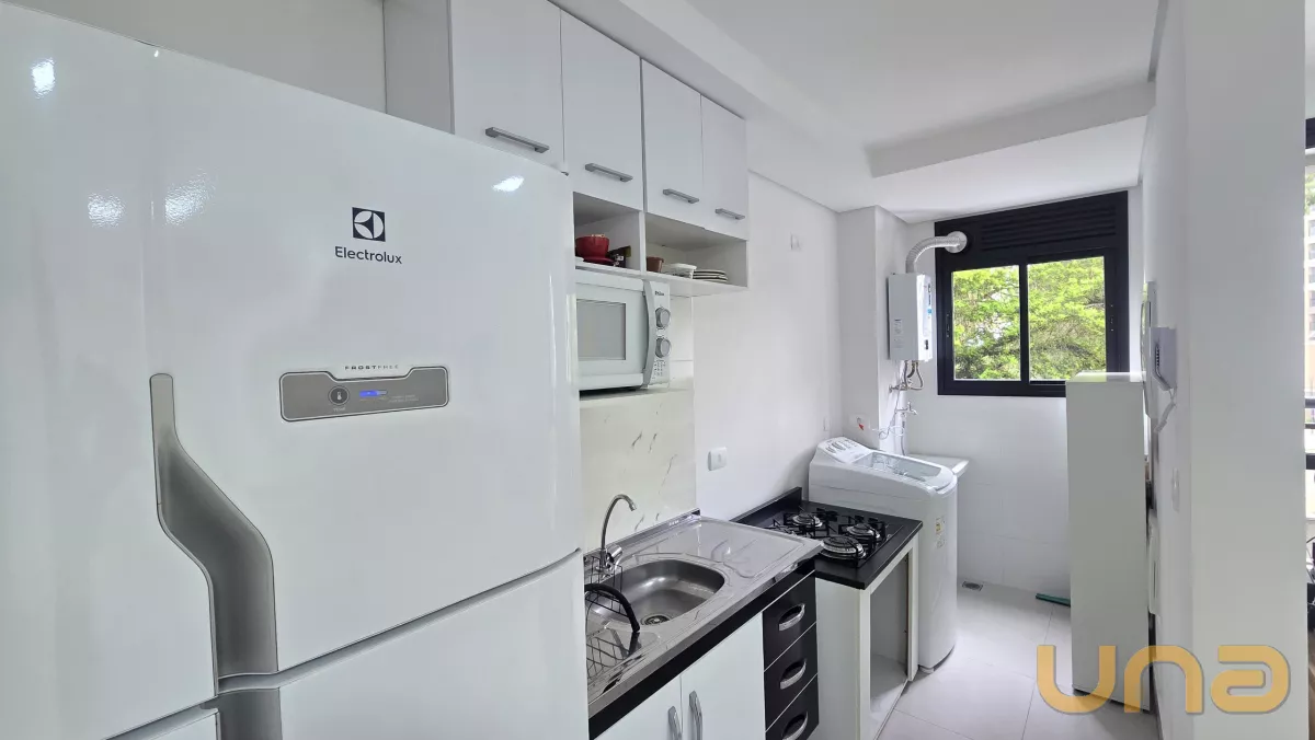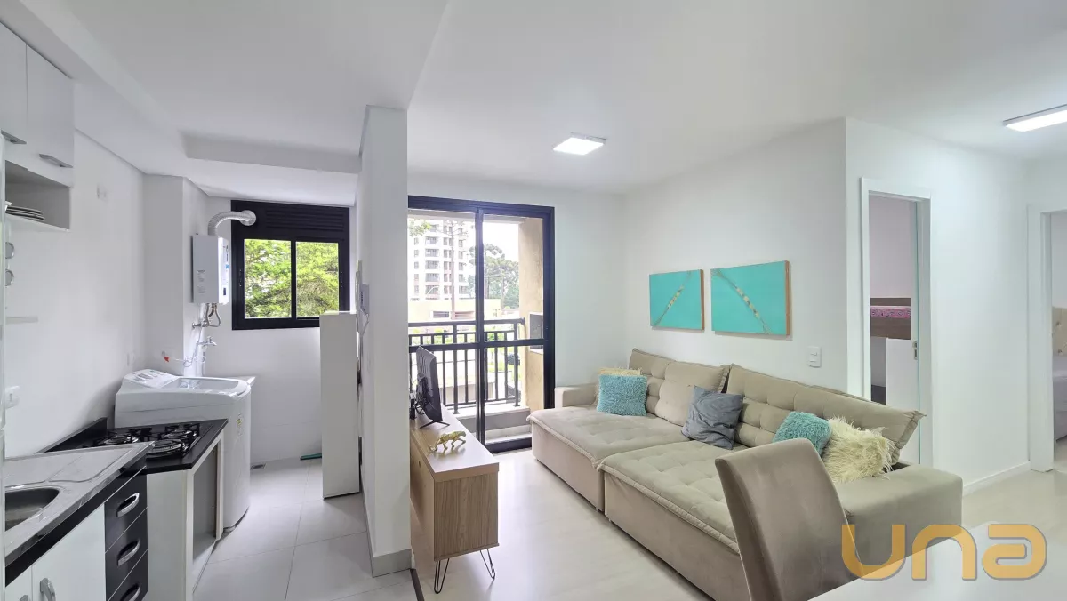 Apartamento mobiliado com 44 m², 2 dormitórios, 1 banheiro, cozinha equipada e vaga de garagem. Localizado em região nobre do Ecoville, com alta procura para locação.