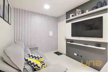 O imóvel possui 55,97m² de área privativa, contando com espaço de sala de estar e jantar, cozinha planejada com área de serviço e 2 quartos com ótimo espaço.