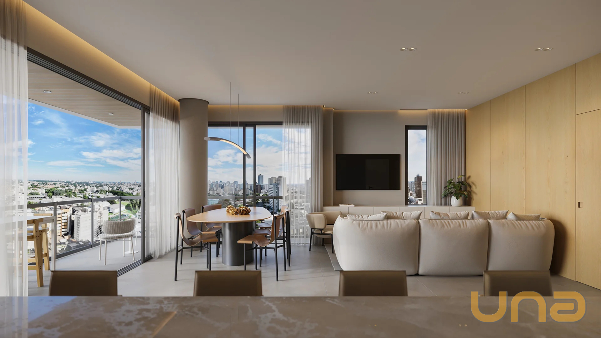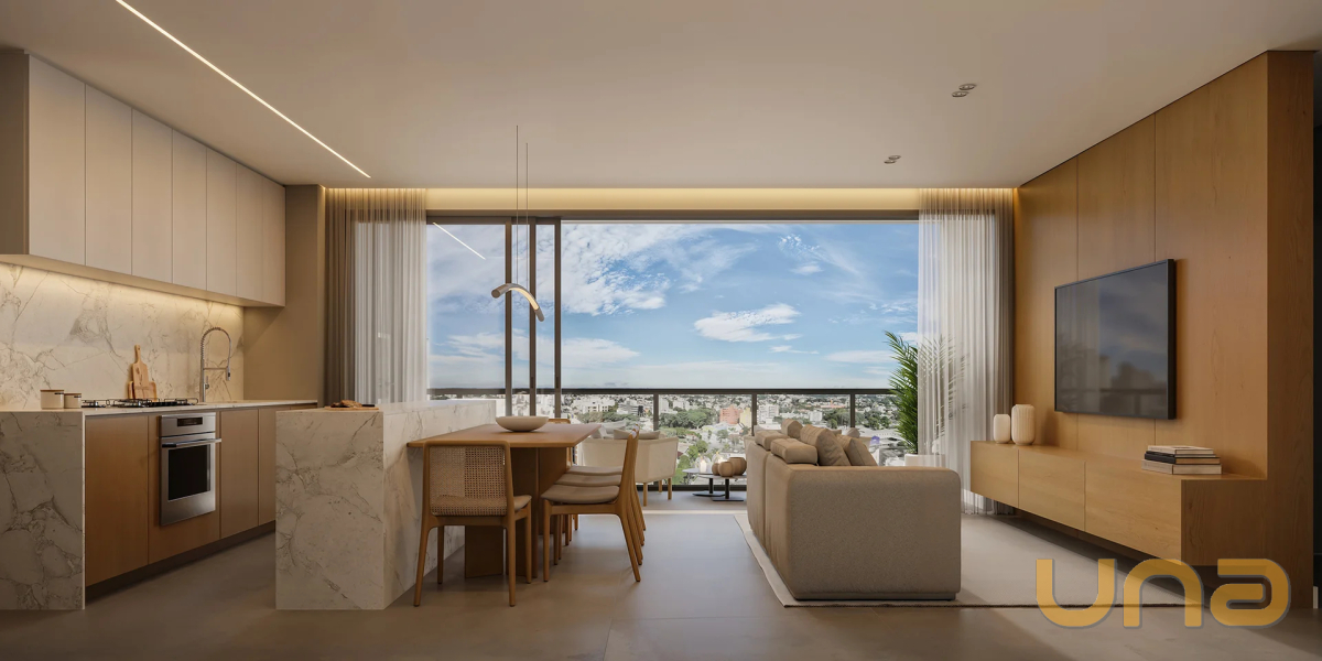 O apartamento dispõe de esquadrias de alta performance e persianas integradas, garantindo conforto térmico e acústico. Possui ainda manta acústica entre as lajes e 02 vagas de garagem.