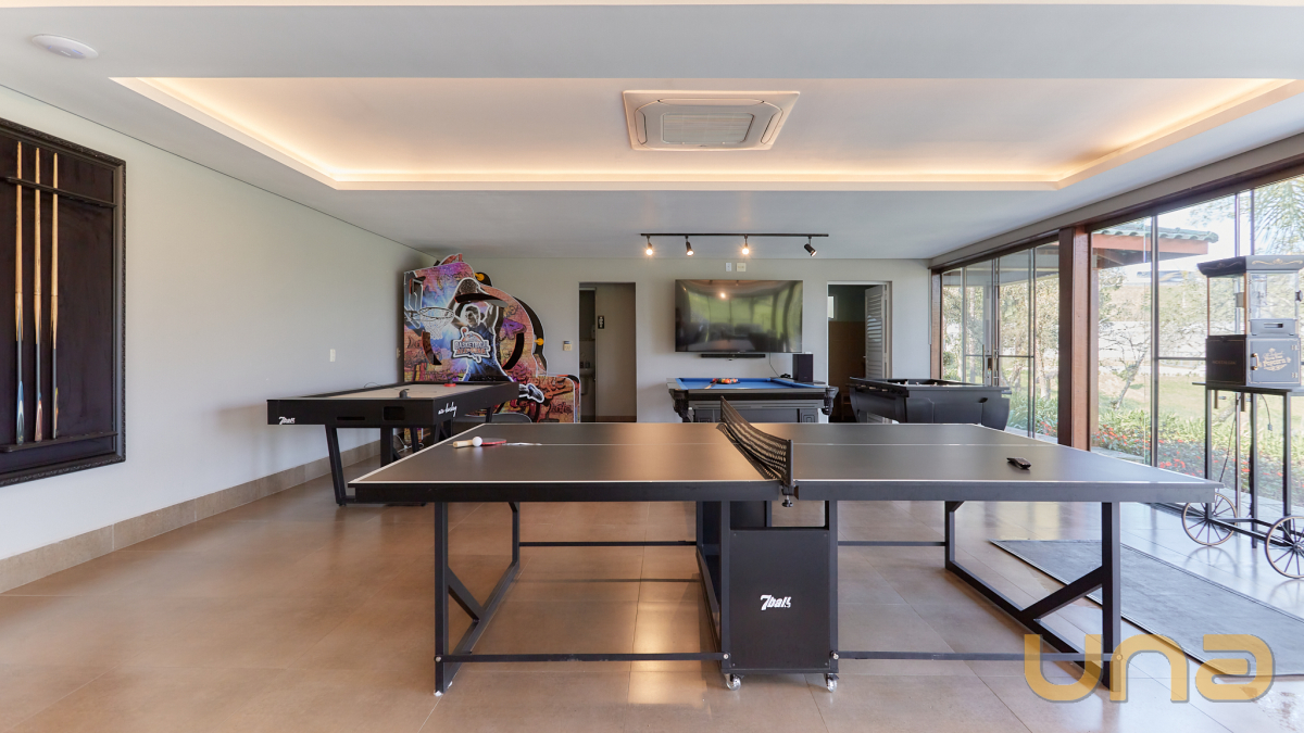 Residência Principal: Casa de alto padrão em local elevado com vista panorâmica.Espaço de Lazer: Piscina, sauna, churrasqueira.Área de Entretenimento: Sala de jogos, churrasqueira gourmet e espaço kids.Lagos e Atividades: Dois lagos com chafarizes, ponte elevada, tirolesa e pedalinhos.Esportes: Quadra poliesportiva, pista de caminhada, ciclovia, academia e área de pesca.Infraestrutura: Casa para caseiros, espaço para criação de animais, áreas para cultivo de hortifrútis e árvores frutíferas.Paisagismo e Iluminação: projeto de paisagismo e iluminação profissional.Detalhes Especiais: Oliveiras centenárias.Localização: