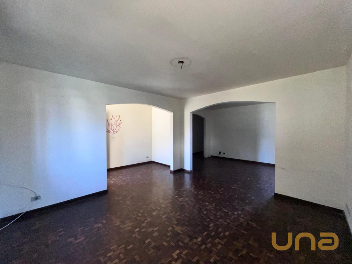 No térreo, temos 3 quartos (sendo 1 suíte e 2 com armários), salas de estar e jantar, copa/cozinha com armários, banheiro social e despensa. No subsolo, 1 quarto com lavabo, até 3 vagas de garagem, churrasqueira e 1 sala, além de área de serviço anexa à casa.