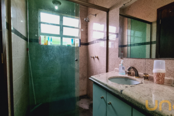 Banheiro da suíte com box em vidro;